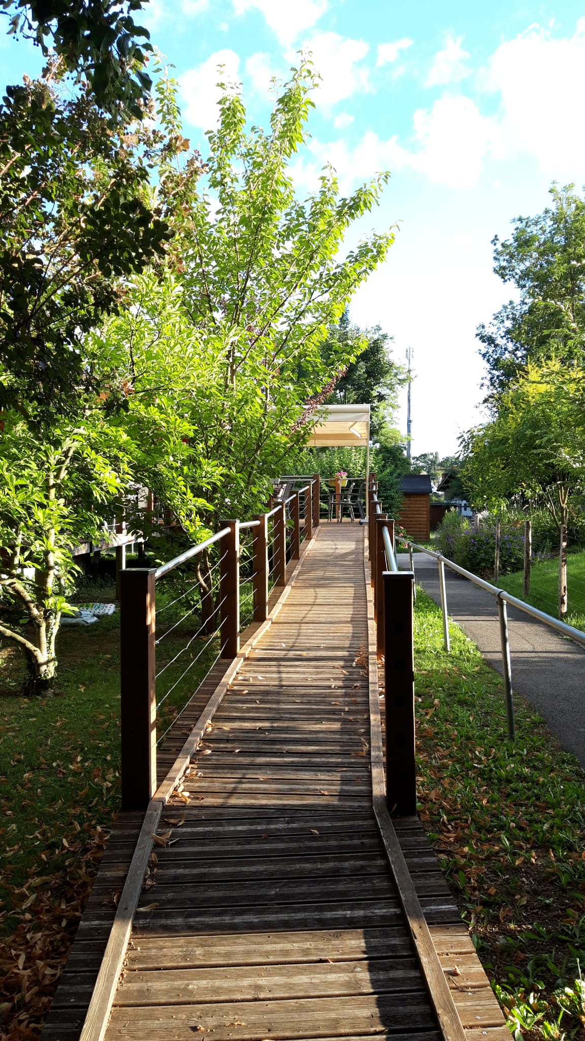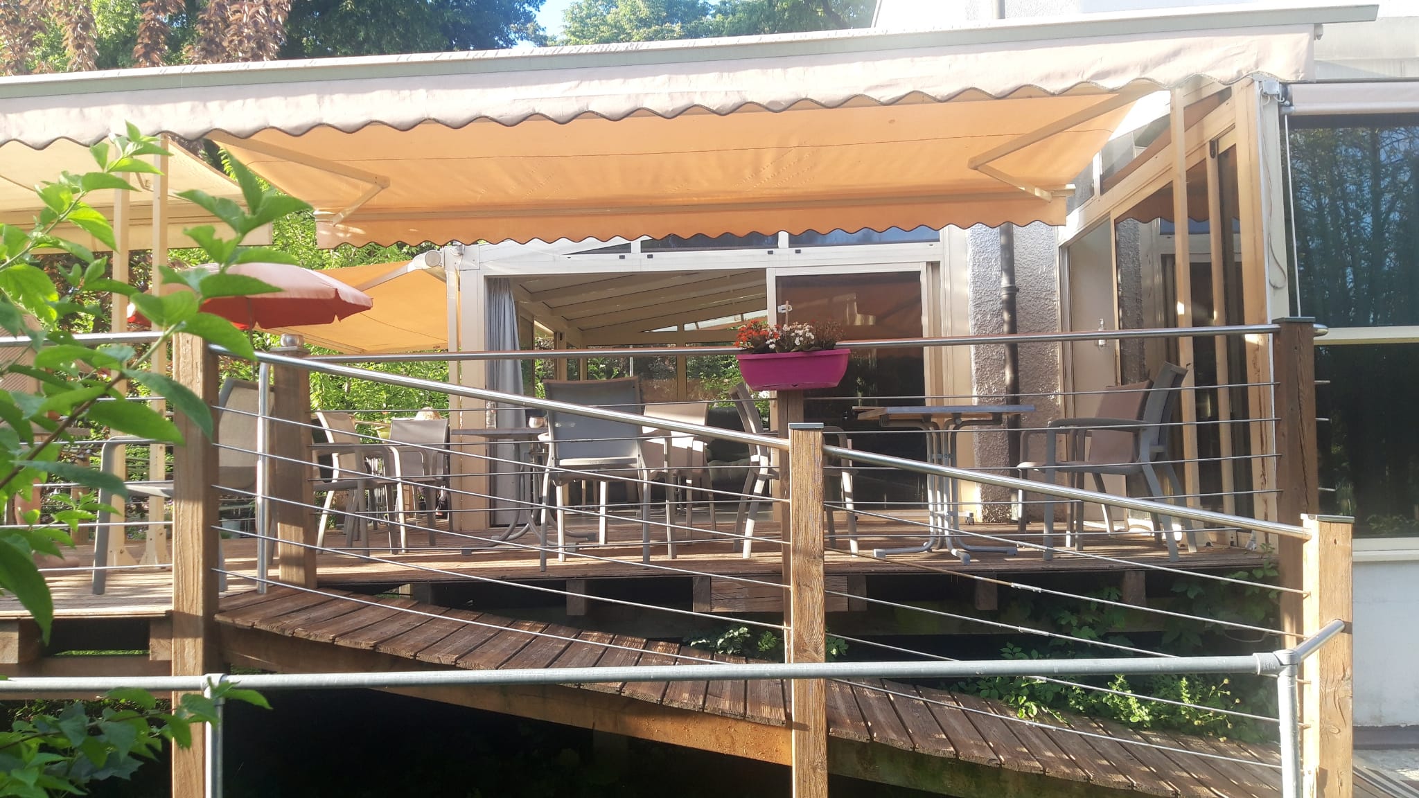 Des nombreux chantiers qu’il a assuré, nous citerons ici : les terrasses qui ont bien agrandi l’espace du salon durant la belle saison ainsi que les rampes d’accès, les pavillons extérieurs près de la piscine ainsi que celui pour le personnel, le montage des 3 cabanons extérieurs, l’abri pour les poubelles, la pose des velux, l’adaptation de la baie vitrée au bureau, l’aménagement des poulailler et des enclos, la rénovation des salles de bain, sans compter tout le travail d’électricien, de plomberie, d’entretien du jardin et les petites réparations qu’il assure depuis plus de 15 ans au quotidien !